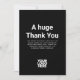 Personnalisez facilement cette carte d'appréciation personnalisée pour les employés du Merci avec le logo de l'entreprise, le nom de l'entreprise, le nom de l'employé et le message de remerciement. Un design d'entreprise simple en noir et blanc total entièrement personnalisable en tailles avant et arrière, sans-serif polices de base et moderne et un look professionnel et clair. Disponible en forme carrée aussi, en taille moyenne, petite et grande. Pas d'ordre minimum. entreprise, employé, standard, classique, vente au détail, petite entreprise, personnalisation carte de retraite d'employé merci appréciation de retraite quotepastor docteur professeur lawyerremercier le jeune oublier la différence que vous avez fait principal bossbig jumboréred employé