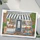 Envoyez à quelqu'un une note spéciale avec cette carte de café de saison avec un tableau d'aquarelle original d'un café et café pittoresque! Le Common Grounds Coffee House est prêt à servir pour la première fois de la saison des lattes d'épices citrouilles ainsi que des pâtisseries fraîches. Scène tranquille, cette vitrine d'automne vient d'ouvrir, et les chipmunks apprécient les restes des clients. Une carte vraiment unique pour tout le monde, ce petit bout de courrier a été créé comme page de septembre d'un calendrier et sert aussi d'illustration encadrable. Vide à l'intérieur pour écrire une note à des amis et à la famille.