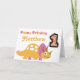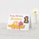 Un dinosaure jaune/rose vif et mignon carte de 1er anniversaire ! Vous pouvez personnaliser le design pour ajouter le nom du garçon/fille d'anniversaire !