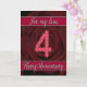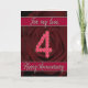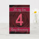 Carte de 4e anniversaire avec des roses et des feu