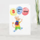 Une carte d'anniversaire pour un enfant de 4 ans avec une souris cheeky peinte à la main, tenant un cadeau et des ballons avec les mots "4 ans aujourd'hui! Le texte intérieur est 'Joyeux anniversaire'