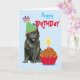 Bonne fête d'anniversaire avec ce design mignon avec un chiot Belge Sheepdog avec un cupcake d'anniversaire souriant et portant un casquette de fête. Le texte peut être facilement changé; il suffit de cliquer sur le bouton personnaliser.
