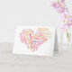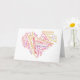 Cette carte présente un design en forme de coeur sur le devant composé du mot Bienvenue dans de nombreuses langues. À l'intérieur, vous pouvez customiser le texte pour répondre à vos besoins.