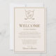 Carte de bienvenue de mariage de golf avec monogramme de blason classique élégant.
