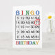 Carte 77e anniversaire. Dites Joyeux anniversaire à un joueur de bingo avec une carte de bingo. L'âge est entouré de rouge. Un joueur fou de bingo va obtenir un énorme coup de pied de cette carte! Copyright Norma Cornes.