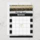 Carte de bingo de douche nuptiale avec parties scintillant en faux or et arrière - plan d'aquarelle à rayures noires.