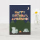Carte d'anniversaire pour Avozinho. Tu appelles ton grand-père Avozinho, pas grand-père. (Avozinho signifie grand-père en portugais.) Alors donnez à votre Avozinho une carte d'anniversaire faite spécialement pour lui ! Cette jolie carte extérieure est parfaite pour tout Avozinho qui aime le camping, la nature, l'extérieur, et regarder les étoiles dans le ciel nocturne avec ses petits-enfants. Cette carte d'anniversaire comporte un ours grand-père et un ours petit-enfant assis à l'extérieur, près d'un feu de camp et d'une tente dans le désert, qui regarde les étoiles dans le ciel et les montagnes. Le texte, mignon et moderne de style scandinave dit : Joyeux anniversaire, Avozinho! Rendre cette carte personnalisable ! Cliquez sur "Edit Design", "Inside Bottom/Right : Text & Images", "Text" et "Add text" pour écrire votre propre message personnalisé à Avozinho à l'intérieur !