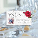 Cartes de boîtier RSVP mariage de code QR de roses rouges. Les petites cartes ont une place pour votre code QR. Envoyer les invités à un site Web en ligne pour répondre à la faire-part de mariage. Remplissez le paragraphe pour expliquer comment faire cela, et aussi donner aux invités une alternative de réponse, comme par e-mail ou téléphone.