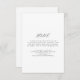 Cette carte élégante de boîtier d'hôtel à script est parfaite pour un mariage simple. Le design minimaliste noir et blanc présente une typographie romantique avec style glamour moderne. Personnalisable dans n'importe quelle couleur. Gardez le design minimal et élégant, tel quel, ou personnalisez-le en ajoutant vos propres graphiques et artwork.