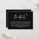La "Black Handwriting Script Mariage Encape Card" allie sophistication moderne et touche personnelle et chaleureuse. Avec un élégant script manuscrit sur un arrière - plan noir audacieux, cette carte ajoute une façon frappante et intime de partager les détails de votre mariage. Idéal pour transmettre des informations essentielles comme l'itinéraire, l'hébergement ou les notes spéciales, son design élégant améliore toute suite mariage. Idéal pour les couples qui aiment l'élégance contemporaine, cette carte feuille une impression mémorable tout en gardant votre célébration sans effort chic.