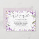Cette élégante carte porte-à-faux mariage de notre collection Lavender Pressé Floral présente des fleurs d'aquarelle violette aux délicates vignes verdoyantes, associées à une police de caractères de script moderne. Parfait pour toute saison. Pour effectuer des modifications anticipées, sélectionnez Personnaliser -> Modifier à l'aide de l'outil de conception.