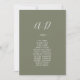 Ces cartes minimales en feuilles vert foncé pour mariage sont parfaites pour un mariage boho. Le design se compose d'une simple silhouette de feuille de verdure en vert d'olivier, au style bohème minimaliste de montagne. La carte s'imprime à l'avant et à l'arrière (double face).