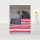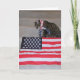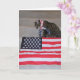 Patriotic cat sitting nex to American flag and wearing flag bandana