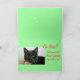 Le visage de mon chaton à table coquin, qui montre de grands yeux verts, est sur le devant de cette carte. Ses rayures noires et brunes aux accents blancs se dressent contre la couverture jaune sur laquelle elle est allongée. À l'intérieur de la carte est Lilly, mon chat noir avec des whiskies et des accents blancs. La légende extérieure est : "Naughty ?" et l'intérieur dit : "Ou Nice ? Prenez votre choix. Joyeux Noël de nous tous." Copyright Gail Storrs 2010.