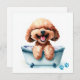 Couleur d'eau mignonne d'un chien de caniche mignon et moelleux dans une baignoire. Idéal pour les amoureux de les chiens.
