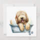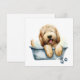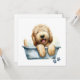 Aquarelle de chien mignonne illustration d'un heureux chien Labradoodle moelleux dans une baignoire. Idéal pour les amoureux de les chiens.