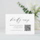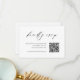 Introduire la carte de code QR de mariage moderne noir et blanc RSVP QR, un mélange parfait de simplicité élégante et d'élégance raffinée. Cette carte est dotée d'un code QR moderne pour les RSVP sans effort, associé à un design minimaliste noir et blanc qui respire le raffinement.