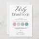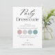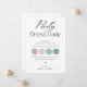 Carte de code vestimentaire minimaliste pour les invités, informations sur la fête de mariage, famille de la mariée et du marié, tenue de mariage, palette de couleurs pour les invités, page de détails modifiables.
