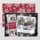 Le carte photo de vacances mignon dispose d'une bande de cabine photo avec deux photos et un panneau de texte rouge canneberge, plus un instantané inspiré de la caméra instantanée avec une légende manuscrite. Personnalisez avec l'année et votre nom de famille ou message personnalisé, sur un arrière - plan rustique de tableau noir parsemé de flocons de neige blancs dessinés à la main.