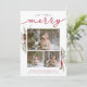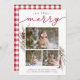Partagez vos vœux de fêtes avec ces cartes de Noël rustiques chic avec trois de vos photos préférées (1 paysage, 2 carrées) entourées d'une fine bordure blanche avec des branches de peinture aquarelle, des rameaux, des fleurs rouges et des pommes de pin qui dépassent des coins. "Très Joyeux Noël" apparaît en haut dans un mélange élégant de lettres capitales et de caractères cursifs. Personnalisez avec votre message de vacances personnalisé, votre/vos nom(s) et l'année en bas. Les cartes sont imprimées au verso avec un motif à carreaux rustique de type buffalo dans des tons rouges et blancs assortis pour les fêtes.