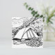 Un carte pour notes avec une page de coloriage sur le thème du camping avec une scène avec une tente devant les montagnes d'un côté et l'autre est juste vide. Envoyer à un ami ou coloriez vous-même !