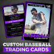 Créez une carte personnalisée de baseball pour célébrer votre joueur favori. Ce modèle personnalisable vous permet d'ajouter le nom, l'équipe, les statistiques et la photo de votre joueur. Le design violet et noir est élégant et professionnel, parfait pour montrer les réalisations d'un joueur.
