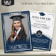 Célébrez votre diplômé en style avec cette élégante carte de trading bleu et argent! Entièrement modifiable, cette conservation est dotée d’un design sophistiqué, d’un texte personnalisable et d’un emplacement pour la photo du diplômé. Parfait pour les annonces, les faveurs de fête ou les cadeaux de fin d'études uniques, cette carte design fait de votre diplômé la star du moment !