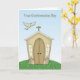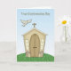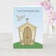Une carte de confirmation avec colombe une église sur une colline herbeuse