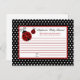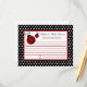 Ces adorables cartes de conseil écrites Red Ladybug sont un complément parfait à tout baby shower ou fête d'anniversaire. Il vous suffit de remettre ces cartes à vos invités, ainsi que des stylos Sharpie à pointe fine. Vos invités peuvent alors noter tous les conseils qu'ils ont pour la nouvelle maman d'être ou pour le garçon ou la fille d'anniversaire. Ils sont imprimés à une taille de 4,25 po x 5,6 po sur un stock de couverture de 120 lb ultra-lourd brillant (stock de carte). Nous avons une ligne entière consacrée à ce design ici à zazzle store sous l'onglet * Design Collections menu pour inclure des invitations (5x7), Étiquettes de retour, Étiquettes de messagerie, Envelope Seals, Timbres d'étape, Cup Cake Picks, Water Bottle Wrappers, Hershey's 1.55 oz. Grandes barrettes, Stickers miniatures Hershey's, Sac à Popcorn Micro-Ondes, Cartes de Place Écrits, Toppers à Sac, Cartes de Remerciement FLAT (4x5), Cartes de Remerciement FLADED (4x5), Balises de Faveur, Cartes de Menu, Cartes à Monnaie, Couvercles Lollipop, Signets, Cartes de Bingo, Cartes Marqueurs, Bingo Card Call Out Sheets, Writable Advice cards (4x5), etc.