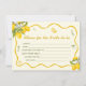 Ajoutez une touche de fraîcheur à votre fête avec cette carte de recettes de Fête des mariées de citron personnalisée ! Convient parfaitement pour un thème de douche à nuptiale, ce design charmant est composé de citrons lumineux, ce qui en fait l'endroit idéal pour un événement principal de citron de douche à nuptiale. Que vous planifiez un thème de la douche nuptiale au citron ou que vous cherchiez des idées créatives sur la douche nuptiale au citron, cette carte de recettes est un bon cadeau pour les invités. Un must pour les idées de douches nuptiales estivales !