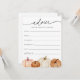 Demandez aux clients de la douche de remplir ces adorables cartes de conseils à votre baby shower. Personnalisez le avec le nom de la maman-to-be et la date de la douche. Doté d'un design minimaliste avec script de calligraphie et citrouilles d'aquarelle pour correspondre à la Collection trouvée sur la boutique Adore Paper Co. Zazzle.