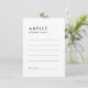 Nous vous présentons notre modèle de carte de conseils de mariage moderne et audacieux en blanc, une véritable représentation du minimalisme et de l'élégance modernes. Avec son mélange unique d'éléments de design créatifs et chics, ce modèle est parfait pour ceux qui recherchent une esthétique soignée et audacieuse pour leur jour spécial. Notre typographie décalée chic ajoute une touche de sophistication intemporelle à votre mariage, que vous planifiez votre grand jour pour le printemps, l'été, l'automne ou l'hiver, la polyvalence de ce modèle garantit une personnalisation facile pour n'importe quelle saison. Le noir et blanc classique offrent un fond neutre propre et lumineux qui garantit que votre esthétique de mariage sera sans effort à la hauteur. Comme pour tous nos modèles, si vous avez des questions ou des demandes spéciales, n'hésitez pas à nous demander.