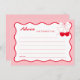 Célébrez la future mariée avec cette "Carte de conseils pour une baby shower de mariage Rouge Rose Cerise sur le dessus", parfaite pour un thème de baby shower de mariage avec une cerise sur le gâteau. Elle est la vedette de la journée avec une ambiance de baby shower de mariage "elle est la cerise sur le gâteau". Idéal pour des idées de baby shower de mariage à la Saint-Valentin ou un thème de baby shower de mariage à la Saint-Valentin, cette carte convient aux idées de baby shower de mariage rose. Avec une ambiance de baby shower de mariage "l'amour dans l'air", elle complète un thème de baby shower de mariage "embrasser la demoiselle d'honneur au revoir" et un thème de baby shower de mariage rouge et rose avec un nœud.