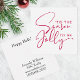 Diffusez l'esprit joyeux des fêtes avec cette carte de calligraphie moderne mettant en vedette la phrase festive « C'est la saison d'être joyeux » en caractères gras rouges. Parfait pour les agents immobiliers, les propriétaires de petites entreprises et les professionnels qui souhaitent envoyer des vœux de vacances mémorables à leurs clients et collègues. Le verso comprend un espace pour votre nom d'entreprise, votre logo, votre site web ou vos coordonnées afin que vous puissiez garder votre marque à l'esprit. Personnalisez facilement pour un fini soigné et professionnel. Idéal pour les notes de remerciement aux clients, les envois de fêtes d'entreprise et les vœux attentionnés de fin d'année.