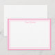 Custom name Note Card shown in white with a carnation pink color double border trim.