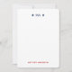 Ces cartes patriotiques personnalisées sont conçues pour insuffler un sentiment de fierté nationale dans votre correspondance. Ces cartes de notes sont à la fois élégantes et fonctionnelles, parfaites pour une variété d'utilisations personnelles et professionnelles. L'avant de chaque carte de note est conçu avec une esthétique minimaliste, présentant des initiales monogrammées en haut, flanquées de deux étoiles, avec un nom complet dans une police simple et moderne en bas dans un rouge vif, assurant une touche raffinée et personnalisée à chaque note que vous écrivez. Le revers de chaque carte est orné d'une interprétation audacieuse et artistique du drapeau américain, avec des rayures rouges dessinées à la main et un champ bleu rempli d'étoiles blanches. Ce design remarquable et patriotique ajoute une touche de caractère et de flair, rendant ces cartes de notes non seulement fonctionnelles mais aussi visuellement attrayantes. Ces cartes personnalisées sont parfaites pour une variété d'occasions, y compris des notes de remerciement, des invitations, des annonces, ou simplement rester en contact avec des amis et la famille. Le design sophistiqué les rend adaptés à la fois à la correspondance formelle et décontractée, vous permettant d'express votre personnalité et votre style dans chaque message. Que vous envoyiez un remerciement sincère ou un bonjour rapide, ces cartes de notes personnalisées laisseront une impression durable. Idéal pour vous-même ou comme cadeau pour quelqu'un de spécial, cette papeterie personnelle est un cadeau réfléchi et pratique pour les anniversaires, les vacances, les diplômes, ou toute occasion spéciale. Le design intemporel et les éléments personnalisés assurent que cet ensemble de papeterie sera chéri et utilisé pour les années à venir. Améliorez votre expérience d'écriture et donnez plus de sens à chaque note grâce à ces élégantes cartes de notes personnalisées, conçues pour ajouter une touche personnelle et sophistiquée à chaque message que vous envoyez. Avec un monogramme et un nom personnalisés, ainsi qu'un beau design patriotique, ces cartes de notes sont parfaites pour tous ceux qui apprécient l'art de la communication manuscrite. Célébrez la joie d'écrire et de partager vos pensées avec ces magnifiques cartes de notes personnalisées.