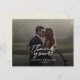Une façon formidable et réfléchie de remercier vos amis, votre famille et vos collègues qui sont venus vous soutenir le jour de votre mariage avec ce carte de remerciements photo moderne avec un script écrit main "merci" et un coeur d'amour.