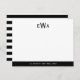 Carte de note moderne 3 Monogramme initial noir blanc rayures