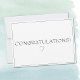 A simple yet charming all occasion 4.5"x6.25" congratulations flat card with sender's name and address on back. Easily change or remove the text using the Template provided. The front and back background is a bright white. Your choice of other sizes, paper types and envelope. See "About" for more information. High school or college graduation, engagement, weddings, news of pregnancy, anniversary milestone, first home, promotion, retirement celebrations.