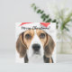 Beagle mignon portant un chapeau de Père Noël.