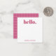 Personalized stationery enclosure notecard with a pink gingham pattern in notes of dark deep and vibrant rose pink with the sentimental words "hello". Tuck it into a flower bouquet or meaningful gift. These minimal flower shop inspired enclosure cards bring a retro kitchen vibe to your most thoughtful moments.
