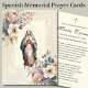 Doté d'une belle image catholique traditionnelle de la Sainte Vierge Marie, Notre Dame de Grâce entourée de fleurs. L'arrière - plan est un dentelle vintage. Tous les textes et polices sont en espagnol et peuvent être modifiés. Voici le poème traduit en anglais : Quand je dois vous quitter pour un court moment, s'il vous plaît ne soyez pas triste ou ne versez pas de larmes, ni ne vous accrochez à votre chagrin tout au long des années ; au lieu de cela, recommencez avec courage et avec un sourire pour ma mémoire, et en mon nom, vivez votre vie et faites tout comme avant. Ne nourrissez pas votre solitude de jours vides, mais remplissez toutes les heures de manière significative. Rejoignez votre main pour réconforter et encourager, et en retour, je vous réconforterai et vous gardera près de moi; et ne jamais avoir peur de mourir, parce que je vous attendrai au ciel!