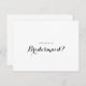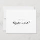 Cette carte d'accompagnement calligraphie moderne est parfaite pour un mariage rustique. Le design sobre et élégant présente une typographie de script classique et sophistiquée en noir et blanc. Changez le libellé et utilisez ces cartes pour demander à tous les membres de votre fête de mariage : bonne d'honneur, maîtresse d'honneur, demoiselle d'honneur, demoiselle d'honneur, demoiselle d'honneur junior, fille de fleurs, meilleur homme, groomsmen et plus !