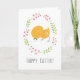 Cette Carte de Pâques Heureuse présente une illustration de mignons grains de cueillette de poussins et entourée d'une couronne florale en forme d'oeuf. Le design se fait dans des couleurs chaudes : jaune, rose et vert. Le dos de la Carte est décoré avec les sprays de fleurs roses. Envoyez cette carte à vos amis et à ceux qui vous sont chers pour célébrer les fêtes du printemps.