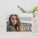 Cette carte moderne avec un cadre à vague sera parfaite pour envoyer vos déclarations de diplômé, ainsi que des informations sur la journée portes ouvertes au verso si vous choisissez de les ajouter.