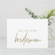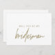 Cette carte fantaisiste de bridesman en calligraphie or est parfaite pour un mariage moderne. Le design se compose d'une typographie dorée élégante mais rustique pour un look simple et minimal. Customisez la carte avec le nom de la mariée et du marié. Écrivez un message personnalisé au verso de la carte.