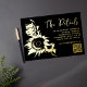 Sunflower noir et or Véritable feuille or Elégant Mariage floral Détails carte avec vrai feuille d'or Code QR Le tournesol, symbole de joie, de loyauté et d'amour éternel, occupe le devant de la scène dans cette carte de détails. Ses teintes dorées sont complétées par un luxueux arrière - plan noir, créant un contraste saisissant qui reflète la profondeur et la brillance de votre amour.