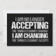 Je n'accepte plus les choses que je ne peux pas changer, je change les choses que je ne peux pas accepter. Faites la différence, prenez position avec cette carte d'activiste politique cool pour une féministe forte. Une citation inspirante pour exiger le changement, l'égalité des droits, et faire une différence avec votre voix et votre vote.