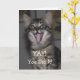 "Yay ! Vous l'avez fait !" "Yipee !" "So Smart !" "Great Job !" "WooHoo !" "Fantastic" et "Félicitations Graduate" font tous partie du message sur cette carte de graduation. Sur le devant de cette carte se trouve notre chaton rayé gris, Caspian, au milieu d'un gros chaton jaune. Sa bouche est levée dans un sourire et sa longue langue rose est complètement allongée de sa bouche sans dents, ce qui la rend extrêmement excitée pour votre heureux diplômé.