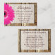 Rustic Country Grange Wood Hot Pink Gerbera Daisy Wedding Réception Carte de direction avec une invitation à la réception sur le devant de l'enceinte carte de visite chubby, et les directions à la réception sur le dos de la carte de réception. Idéal pour les mariées qui utilisent des marguerites gerbères dans leurs bouquets mariages ou leurs pièces d'accueil.